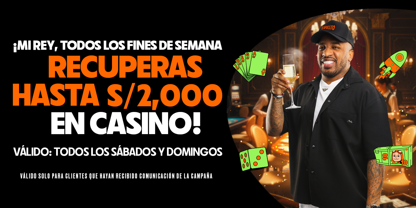 Debes ingresar a tu cuenta en www.teapuesto.pe/Casino los sábados y domingos, jugar Slots, y en caso tengas pérdidas mayores a S/1,500, te devolveremos Cashback sin Rollover al día siguiente. ¡Así es! Tus pérdidas también generan dinero