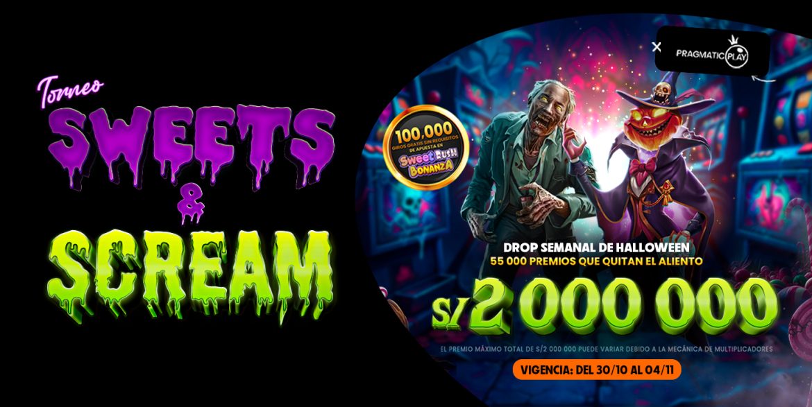 🕸️ ¡Atrévete al torneo Sweet & Screams! ¡Compite por parte de un asombroso pozo de S/2,000,000! 🎃