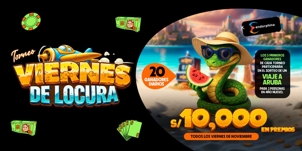 * Por cada S/100 apostados en el juego exclusivo de Endorphina durante los torneos semanales, los jugadores del Top 5 acumularán 1 ticket adicional para el sorteo final. Cuanto más apuesten, más oportunidades tendrán de ganar el viaje.